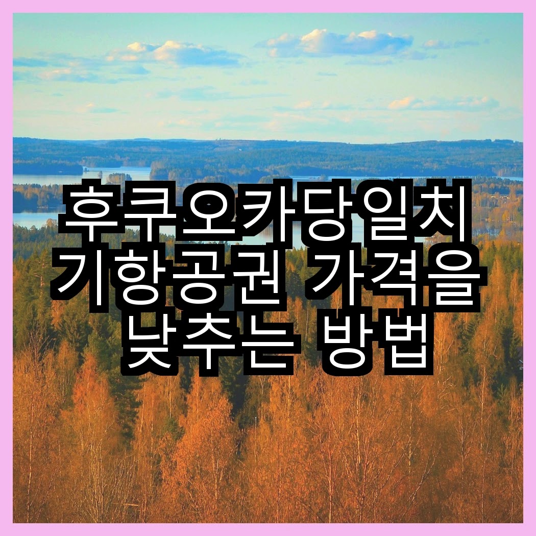 이 정보를 통해 후쿠오카당일치기항공권 가격을 낮추는 방법을 자세히 알아볼게요. 각 항목에서 실질적인 팁과 사례를 제시할 예정이니, 꼭 끝까지 읽어보세요!